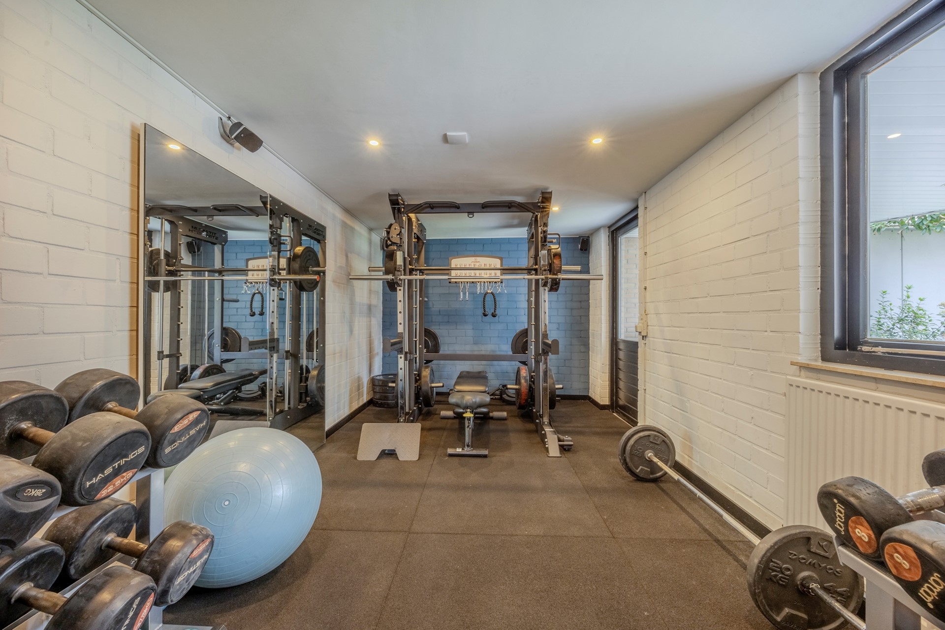Aangrenzend vind je de praktische bijkeuken met aansluitingen voor je witgoed en extra bergruimte. Vanuit hier heb je toegang tot de voormalige garage, die is omgebouwd tot een ruime werk- of hobbykamer. Achter deze ruimte ligt nog een tweede kamer met de cv-installatie en extra opbergruimte welke nu in gebruik is als thuis-Gym.