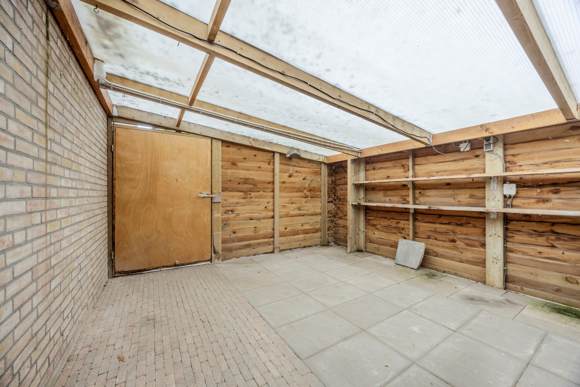 Aan de zijkant van de woning staat nog een houten berging met dubbele deuren, handig voor je fietsen, motor of aanhanger. Op de oprit met carport kun je natuurlijk gewoon je auto kwijt.