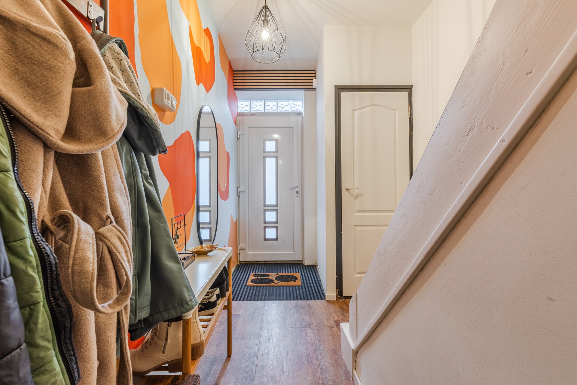 Via de hal met trapopgang en toiletruimte kom je in de lichte doorzonwoonkamer. Dankzij de grote ramen en de uitbouw aan de achterzijde geniet je hier van een ruimtelijk gevoel en veel natuurlijk licht. De extra leefruimte in de uitbouw is perfect als thuiswerkplek, speelkamer of hobbyruimte.