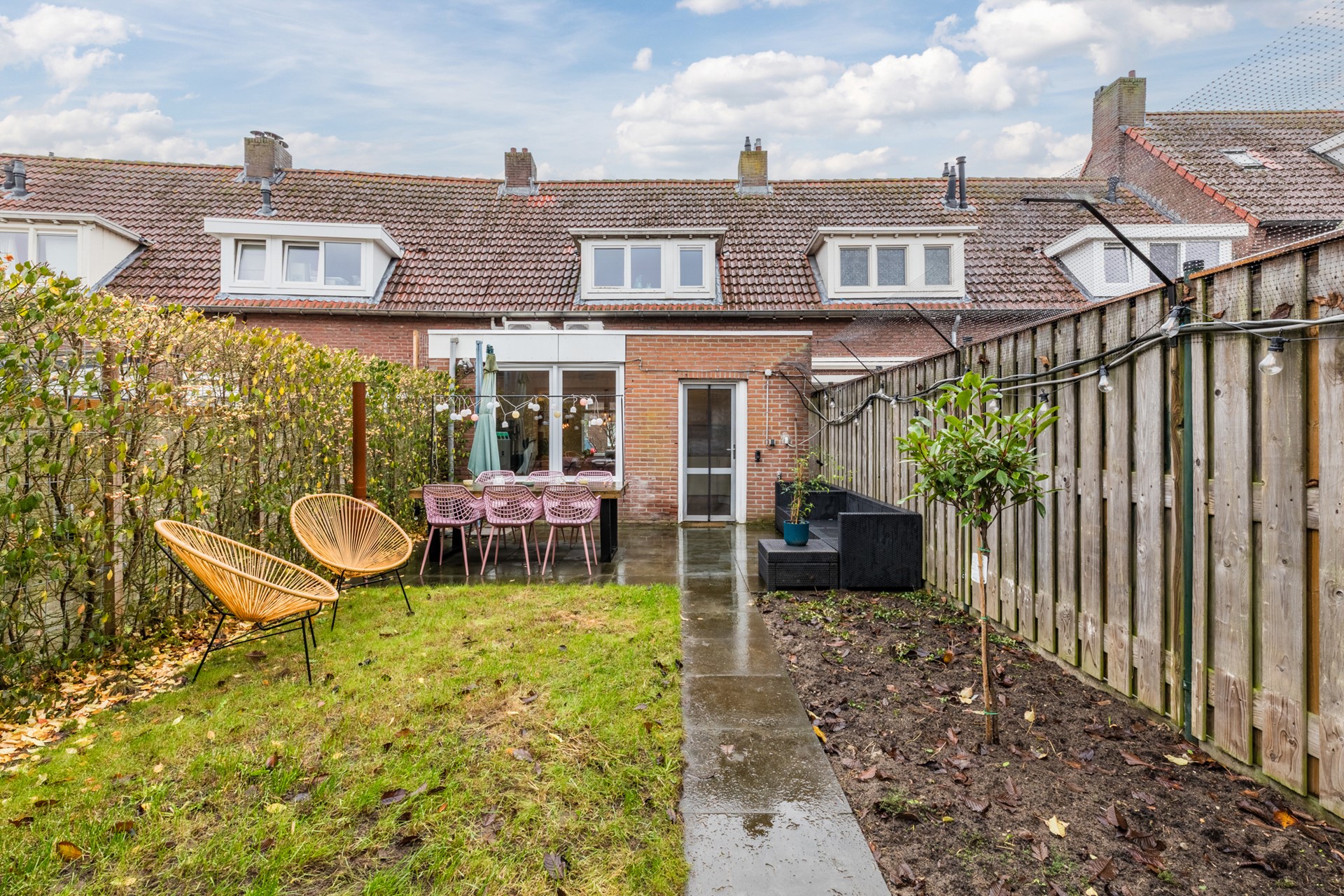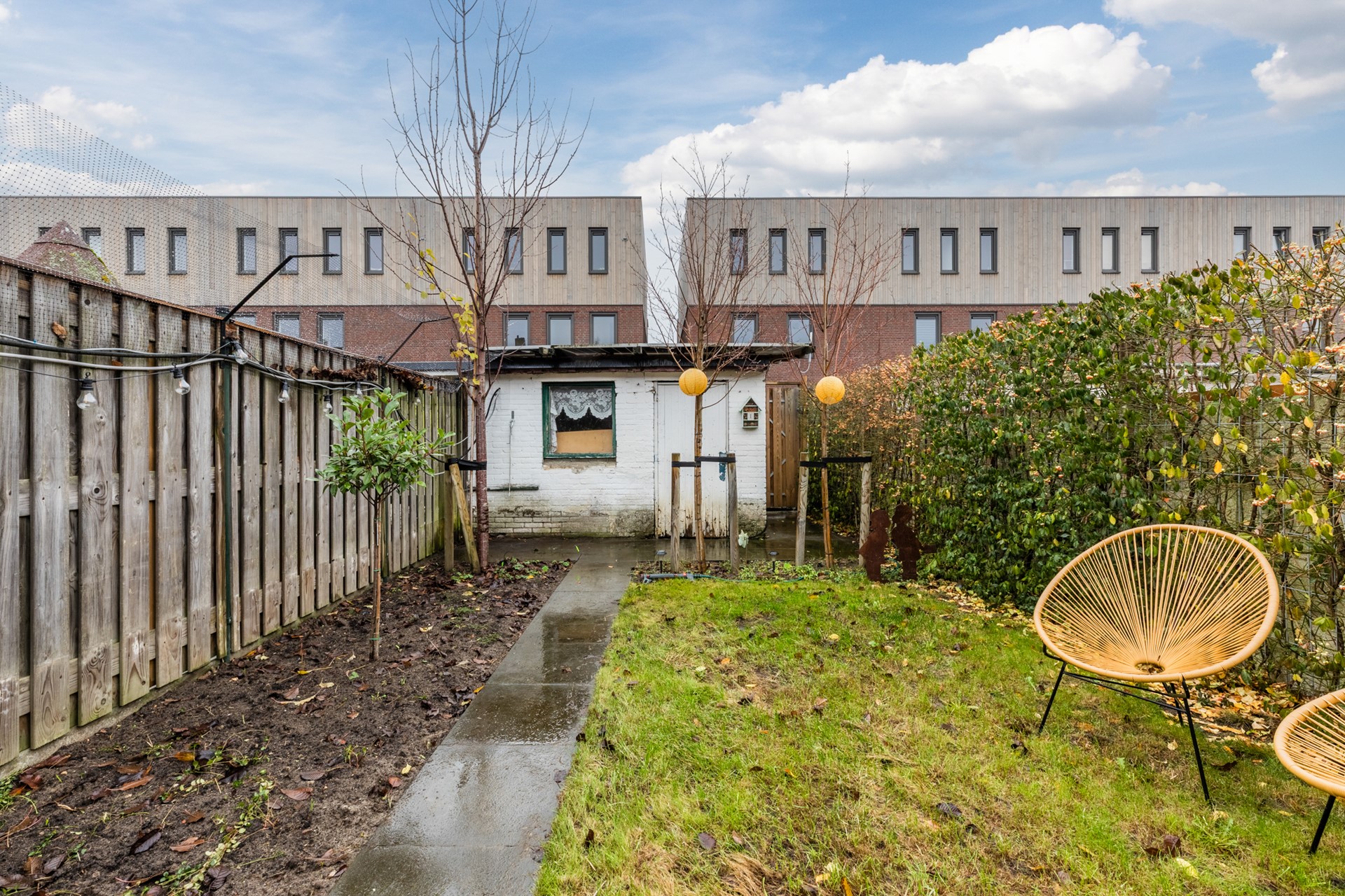 Achter de woning ligt een heerlijke, verzorgde achtertuin van circa 15 meter diep. Met meerdere terrassen, een gazon en gevarieerde beplanting is dit een fijne plek om elk seizoen van het buitenleven te genieten. Achterin de tuin staat een praktische stenen berging voor fietsen en tuingereedschap.
