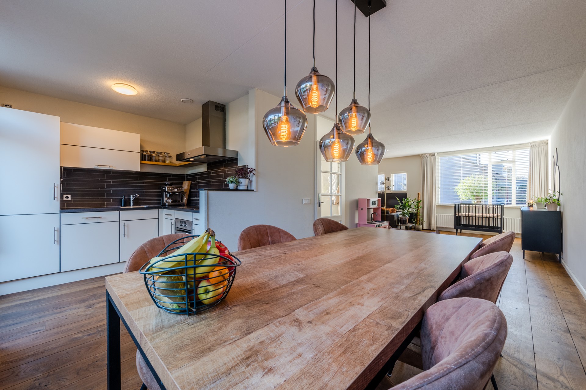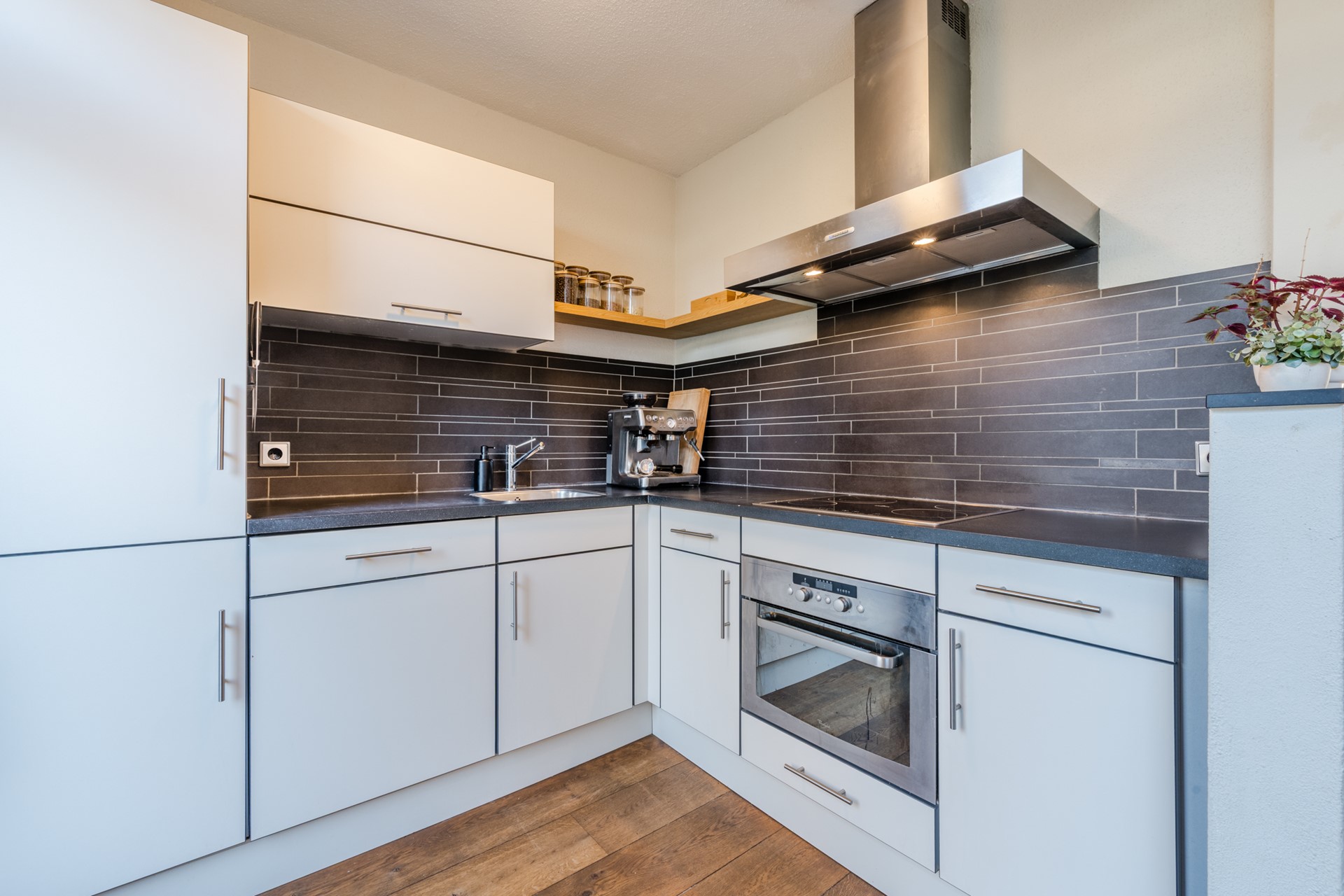 De lichte woonkamer (23 m²) vormt het hart van de woning. De grote ramen laten overvloedig daglicht binnen en zorgen voor een open, uitnodigende sfeer. De keuken grenst direct aan de woonkamer en is uitgerust met moderne voorzieningen: precies wat je nodig hebt om comfortabel te kunnen koken.