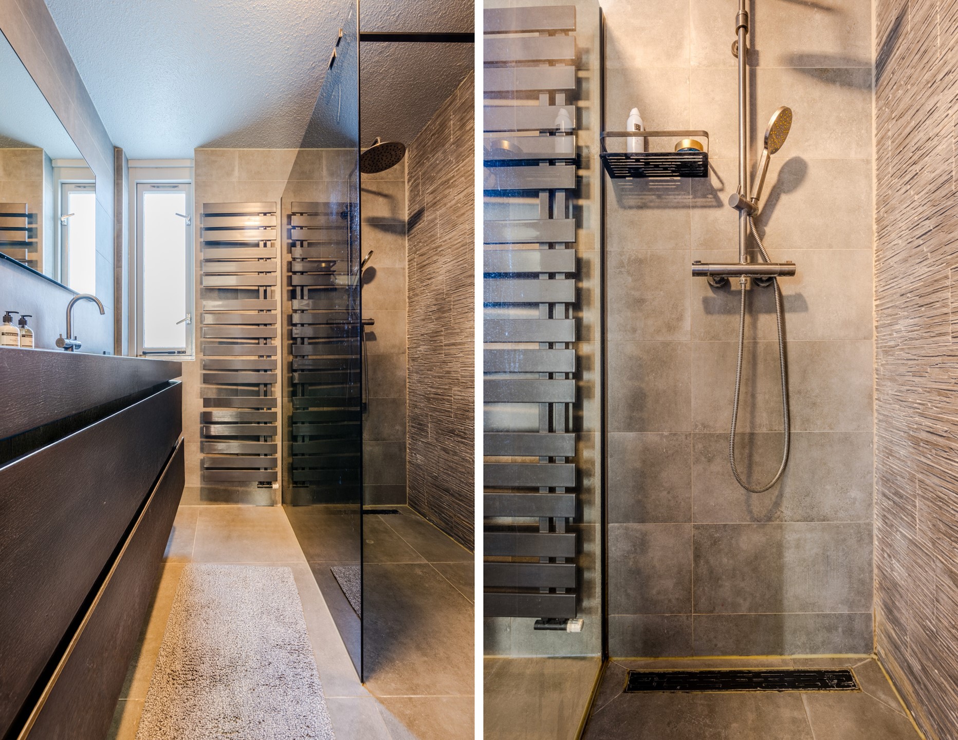 Op de eerste verdieping bevinden zich drie comfortabele slaapkamers, stuk voor stuk licht en praktisch in te delen. De centrale overloop verbindt deze kamers met de luxe badkamer, die is uitgerust met een toilet, dubbele wastafel, wandmeubel en een royale inloopdouche.