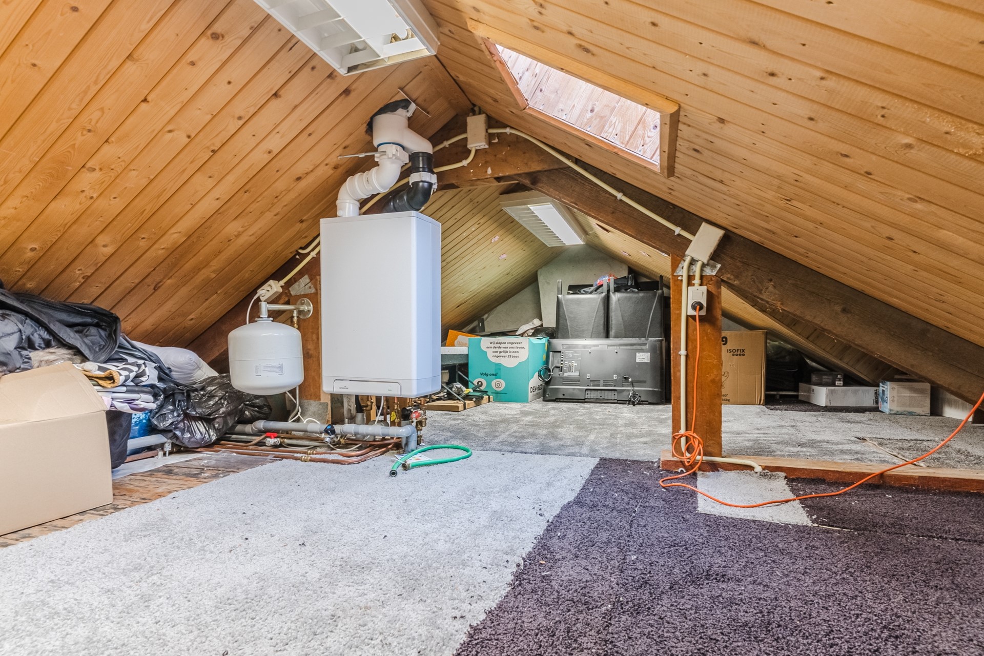 - Zolder met cv-opstelling en bergruimte