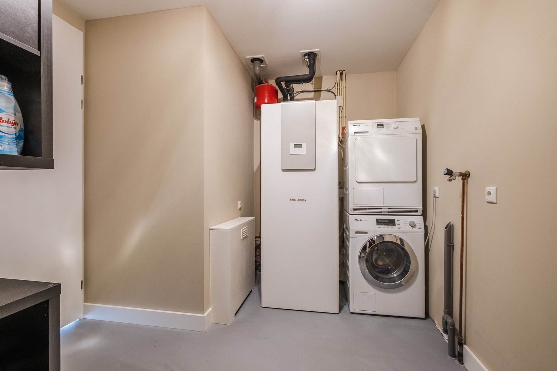 Via de nette entree kom je in de hal met toiletruimte, meterkast en toegang tot zowel de bijkeuken als de woonkamer. In de bijkeuken vind je de technische installaties en extra bergruimte – praktisch en netjes weggewerkt. De bijkeuken is ook eenvoudig vanaf de oprit te bereiken, ideaal voor bijvoorbeeld het stallen van fietsen.