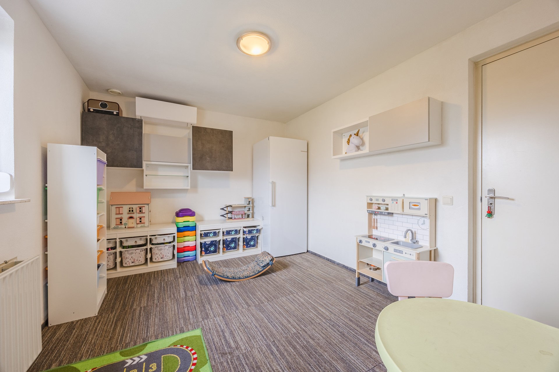 Daarnaast bevindt zich op de begane grond een extra kamer, ideaal als kantoor, speel- of hobbyruimte. De voormalige garage is in gebruik als praktische bijkeuken/berging met verwarming, vaste kast en heeft openslaande deuren naar de oprit.
